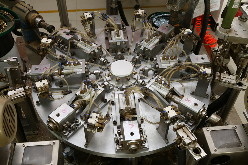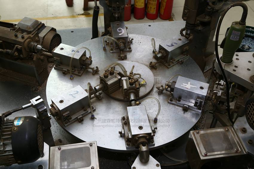 多工位金属转盘加工机:是我司针对金属(铜、铝、铁等)零件进行钻孔、切削、打螺丝等一系列功能。